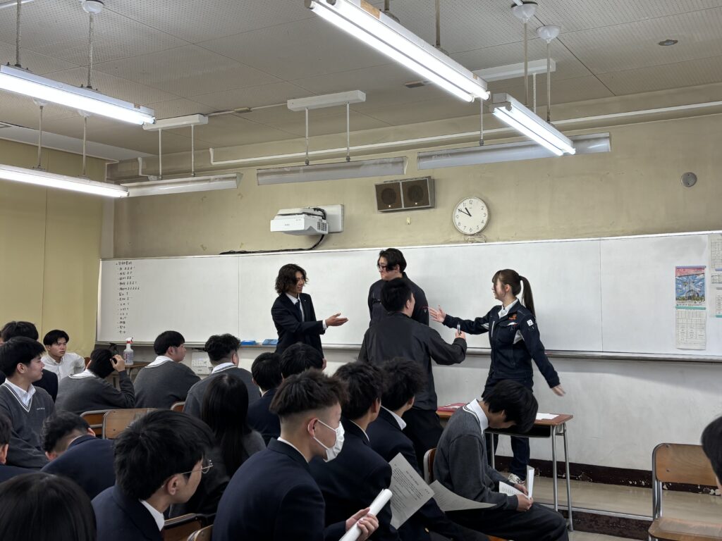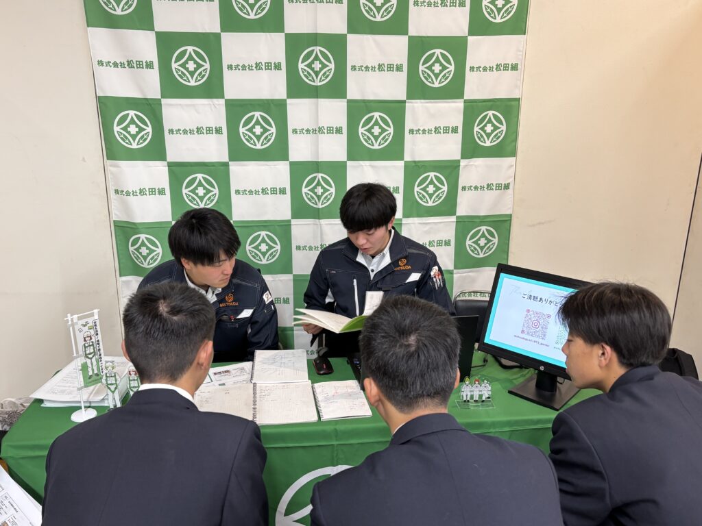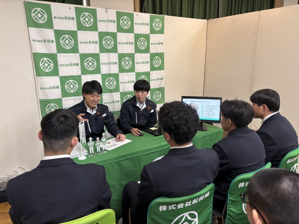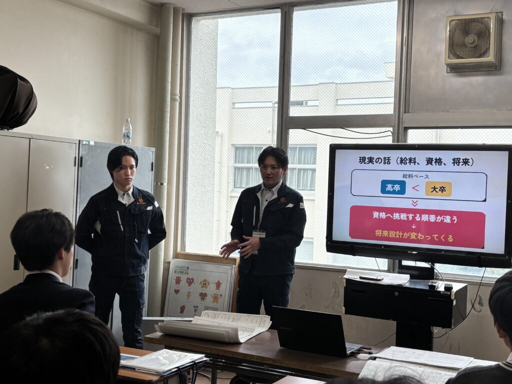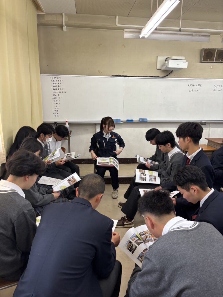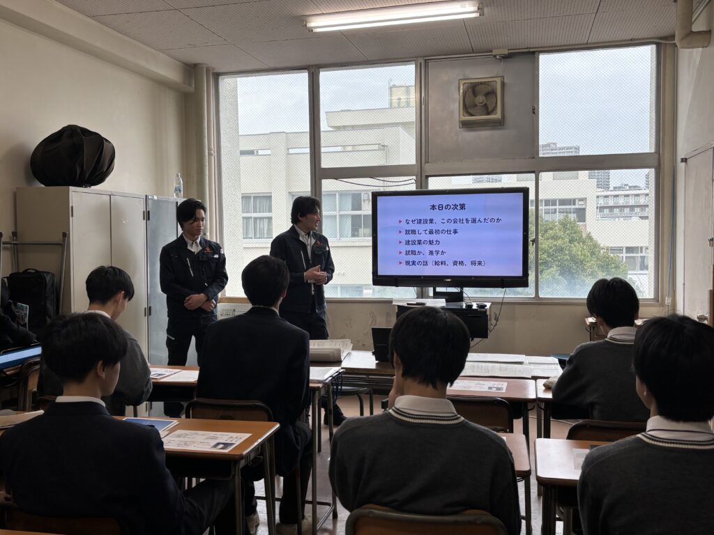 都市環境工学科・建築科の1、2年生に向けて、若手社員が思う自社の魅力をたくさんお伝えしました
